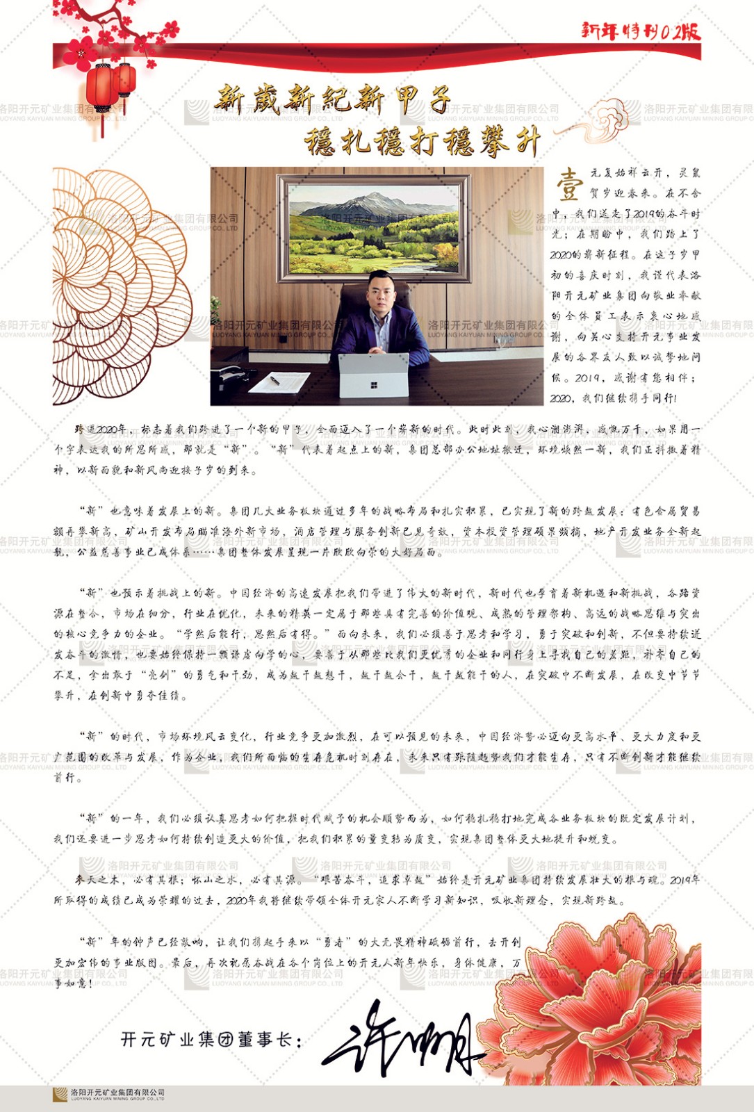 洛陽(yáng)開元礦業(yè)集團(tuán)有限公司簡(jiǎn)介洛陽(yáng)開元礦業(yè)集團(tuán)有限公司,始成立于2006年,位于洛陽(yáng)市開元大道269號(hào)。集團(tuán)旗下共有五余家全資子公司,業(yè)務(wù)涉及有色金屬礦山開發(fā)、礦產(chǎn)品購(gòu)銷與進(jìn)出口貿(mào)易、房地產(chǎn)開發(fā)、文化藝術(shù)、企業(yè)管理與咨詢、資本投資等多個(gè)領(lǐng)域。民建河南省委委員、民建河南省委企業(yè)委副主任、民建洛陽(yáng)市委委員、企業(yè)委主任、洛陽(yáng)民建企業(yè)家協(xié)會(huì)會(huì)長(zhǎng)許明月是公司創(chuàng)始人,現(xiàn)任洛陽(yáng)開元礦業(yè)集團(tuán)有限公司董事長(zhǎng)。在礦業(yè)領(lǐng)域,洛陽(yáng)開元礦業(yè)集團(tuán)擁有多家實(shí)力雄厚的子公司:貴州開元礦業(yè)有限公司探、采礦權(quán)面積共11.33平方公里;興??h銅鑫礦業(yè)有限公司探礦權(quán)面積8.76平方公里,礦山資源潛力巨大;2021年,開元集團(tuán)與盧氏中科礦業(yè)有限公司開展戰(zhàn)略合作。盧氏中科礦業(yè)有限公司專注于有色金屬的浮選、加工和銷售,擁有強(qiáng)大的技術(shù)支撐平臺(tái),是集探、采、選、冶、研為一體的中大型綜合礦業(yè)企業(yè)。目前,盧氏中科王家河1000噸選礦廠已成功投產(chǎn),雙河金礦、柳關(guān)欒盧鉛鋅礦相繼順利開工,樓房銀礦與圪老灣鉛鋅礦的深部探礦重大突破,標(biāo)志著礦山版圖取得重大進(jìn)展,為開元集團(tuán)后續(xù)發(fā)展奠定了堅(jiān)實(shí)基礎(chǔ)。在文化傳媒領(lǐng)域,洛陽(yáng)市明月美術(shù)館通過豐富多樣的藝術(shù)展覽、學(xué)術(shù)研討和公共教育活動(dòng),努力打造一個(gè)集展覽、交流、教育、研究為一體的綜合性藝術(shù)平臺(tái)。此外,在金融投資領(lǐng)域,開元集團(tuán)旗下的北京明峰資本管理有限公司專注于投資具有高增長(zhǎng)潛力的優(yōu)秀企業(yè),特別是高科技、新能源、環(huán)保等新興產(chǎn)業(yè),為客戶提供個(gè)性化的資產(chǎn)配置服務(wù)。在做好企業(yè)經(jīng)營(yíng)的同時(shí),開元集團(tuán)始終不忘企業(yè)的社會(huì)責(zé)任和家國(guó)情懷,以突出的愛心公益事跡,開展了一系列公益慈善活動(dòng):“民建林”公益事業(yè)通過“思源基金”“幫幫公益”線上公益平臺(tái),與眾多愛心人士籌措資金20余萬(wàn)元;資助541名貧困大學(xué)生共計(jì)270余萬(wàn)元,推進(jìn)“數(shù)字助力——河南AI人才培養(yǎng)”;捐款10萬(wàn)元,馳援京津冀、黑龍江洪水地質(zhì)災(zāi)害……公司于2017年底被洛陽(yáng)市慈善總會(huì)評(píng)為“洛陽(yáng)慈善風(fēng)云榜——十大愛心集體”。洛陽(yáng)開元礦業(yè)集團(tuán)有限公司秉承持續(xù)發(fā)展理念,憑借多年來(lái)良好的企業(yè)信譽(yù)與經(jīng)營(yíng)業(yè)績(jī),與全國(guó)多家企業(yè)建立了良好合作關(guān)系,受到社會(huì)各界的一致好評(píng),多次榮獲“納稅標(biāo)兵”“先進(jìn)企業(yè)”“招商引資模范企業(yè)”等榮譽(yù)稱號(hào)?;赝麃?lái)時(shí)路,開元人勠力同心,以“闖”的精神和“創(chuàng)”的勁頭,一路披荊斬棘,踏過千山萬(wàn)水;展望新未來(lái),開元人凝心聚力,不執(zhí)于“舊”,無(wú)畏于“新”,秉承“勇于跨越,追求卓越”的企業(yè)精神,乘著國(guó)家高質(zhì)量發(fā)展新征程的東風(fēng),跨過高山,越過大海,向著集團(tuán)多元化、國(guó)際化的目標(biāo),逐夢(mèng)遠(yuǎn)航,跨越前行!