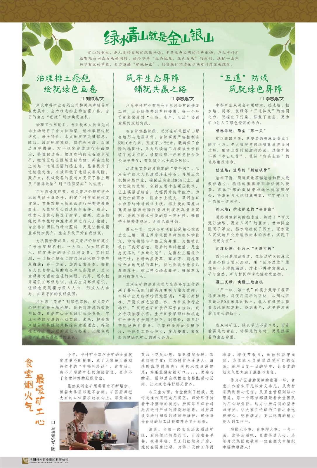 我們堅持“絕不能以犧牲環(huán)境和人的健康為代價從事生產(chǎn)”的理念,重視環(huán)境保護(hù),堅持發(fā)展循環(huán)經(jīng)濟(jì),打造綠色花園式礦山企業(yè)。